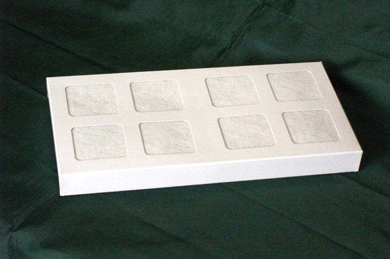 粉末活性炭及び無機吸着剤の混砂紙をダンボール状のハニカム構造体に加工したフィルタ(最少40~最大300セル/平方インチ)です。電気集塵機や各種ガス除去用フィルタに利用でき、難燃加工品の製作も対応しています。