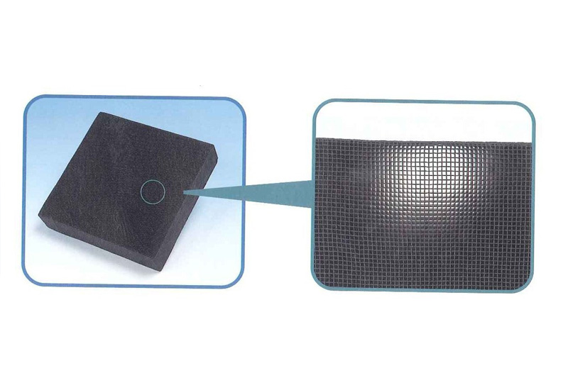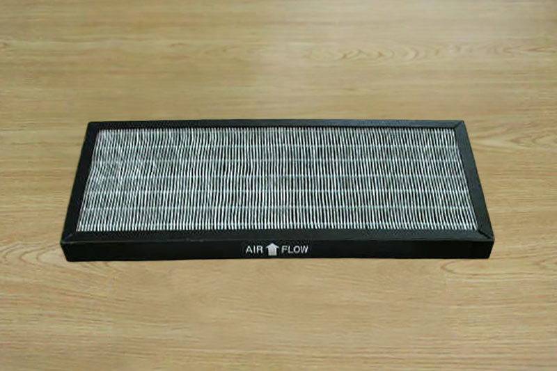 小粒子の高性能活性炭を独自技術により不織布に挟みこんだシートをフィルタ化しました。圧力損失が小さく軽量であるため、クリーンルーム内での使用や天吊空気浄化ユニット等に適しています。